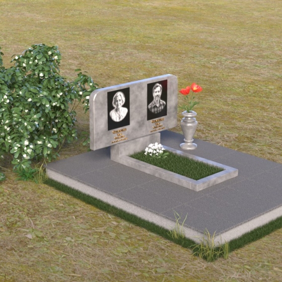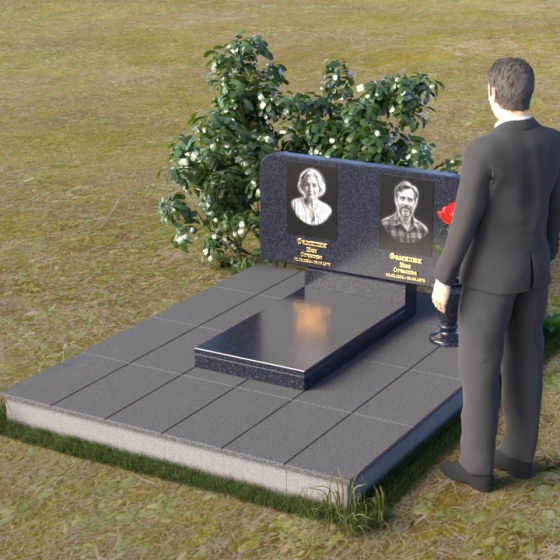 Оформление: Для данной формы стелы идеально подойдет гравировка портретов в овальной или прямоугольной форме. Расположение портретов может быть как симметричным, так и асимметричным, в зависимости от ваших предпочтений. Имена и даты жизни рекомендуется располагать под портретами, используя элегантный шрифт с засечками. Также можно добавить эпитафию, отражающую личность усопшего и вашу любовь к нему.