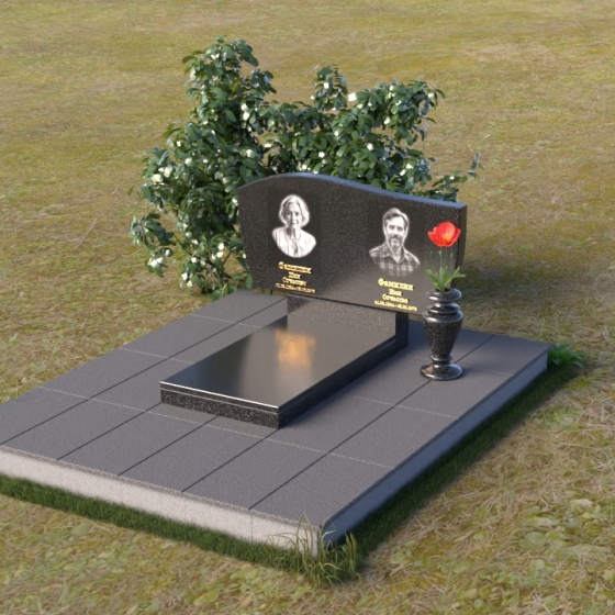 Оформление: Для этой формы стелы рекомендуется выбирать портреты с четкими контурами, чтобы гравировка максимально точно передала образ усопшего. Имена и даты рождения можно разместить под портретами, используя элегантный шрифт с золотым напылением, что придаст ритуальному изделию дополнительную торжественность.