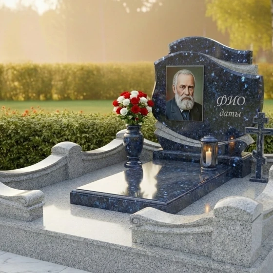Оформление: Учитывая плавные изгибы и элегантную форму стелы, мы рекомендуем использовать для гравировки портрета метод лазерной или ручной гравировки, что позволит добиться максимальной детализации и глубины изображения. Для ФИО и дат жизни идеально подойдут классические шрифты без излишних декоративных элементов, чтобы сохранить чистоту и строгость линий. Расположение портрета в верхней части стелы, а текстовой информации ниже, создаст гармоничную композицию, которая будет легко читаться и восприниматься. Возможно также добавление символических элементов, таких как ветви, цветы или религиозные символы, которые могут быть деликатно вписаны в общую концепцию, подчеркивая индивидуальность усопшего.