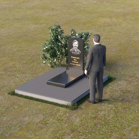 Благодаря своей лаконичной форме, эта стела предоставляет широкие возможности для оформления. Портрет усопшего будет гармонично смотреться как в верхней части стелы, так и чуть ниже центра. Золотое тиснение имени и дат жизни будет элегантно выделяться на фоне полированного камня, создавая четкий и легко читаемый образ. Небольшая тумба, расположенная перед стелой, может служить местом для возложения цветов и памятных вещей. Мы рекомендуем выбирать для этой модели сдержанные, лаконичные шрифты, которые подчеркнут общую элегантность композиции. Подумайте о возможности добавления небольшого бронзового барельефа или скульптуры, отражающей профессию или увлечения ушедшего человека. Это добавит индивидуальности и сделает место памяти еще более личным и значимым. Ваза, выполненная в едином стиле с монументом, завершит композицию и придаст ей законченный вид.