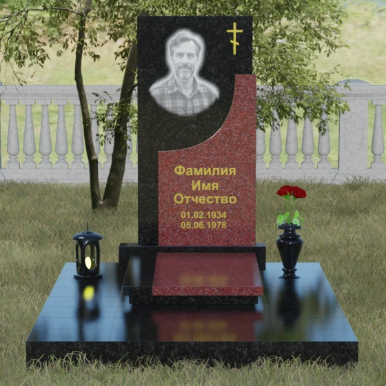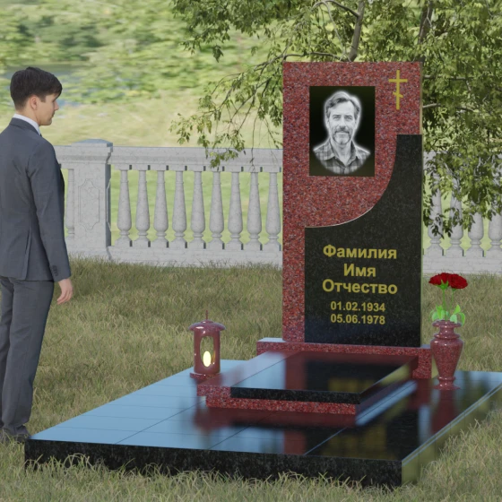 Модель Артикул 024 представляет собой законченное архитектурное решение. Стела установлена на массивный гранитный цоколь, который служит надежным фундаментом и придает всей конструкции необходимую устойчивость. Важной особенностью данного проекта является полное мощение участка: вместо открытого грунта используется сплошная надгробная плита. Это не только создает эстетически безупречный, аккуратный вид, но и значительно упрощает уход за местом захоронения, избавляя от необходимости борьбы с сорняками. В едином стиле с основным монументом выполнены дополнительные элементы декора: изящная каменная ваза, установленная на плите, позволяет приносить живые цветы, сохраняя гармонию композиции. Каменный бордюр по периметру участка четко очерчивает границы мемориала, превращая его в уединенное место для тихой молитвы и воспоминаний.