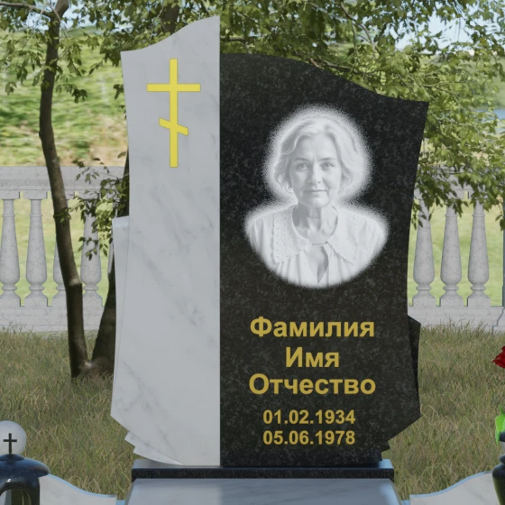 Мы понимаем, как важно передать индивидуальность ушедшего человека, поэтому данная модель доступна в 8 эксклюзивных цветовых решениях. Вы можете выбрать благородный черный гранит Габбро-диабаз, изысканный гранит Амфиболит с его неповторимым рисунком, глубокий Балтик Грин, мерцающий Блю Перл или насыщенный Дымовский. Для создания более теплых или контрастных композиций доступны яркий Лезниковский гранит, белоснежный Мансуровский или премиальный мрамор Тассо. Такое многообразие палитры позволяет подобрать камень, который будет максимально точно соответствовать характеру и жизненному пути дорогого вам человека.