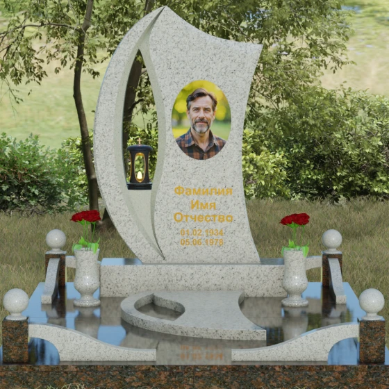 Кому подойдет: Этот гранитный монумент является универсальным и в то же время глубоко индивидуальным решением. Благодаря возможности комбинирования различных видов гранита и выбора способа нанесения портрета (гравировка или фотокерамика), он станет достойным оформлением как мужского, так и женского захоронения. Его часто выбирают для людей творческих, неординарных личностей, чья жизнь была полна движения и внутреннего света. Современный европейский стиль исполнения подчеркнет ваш безупречный вкус и стремление обустроить место упокоения максимально достойно, создав атмосферу умиротворения и вечной памяти.