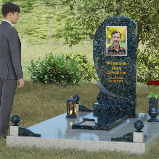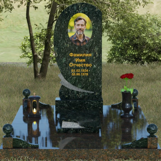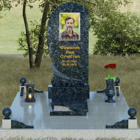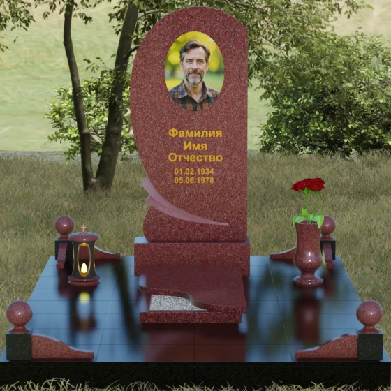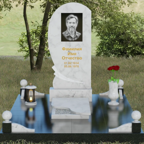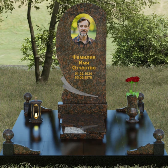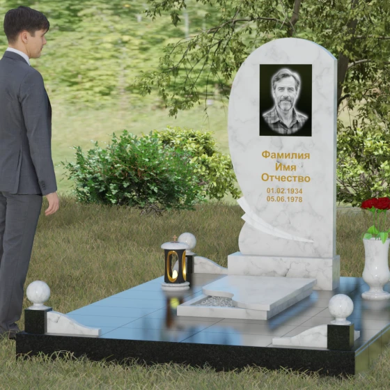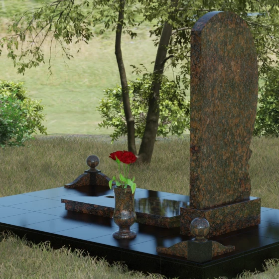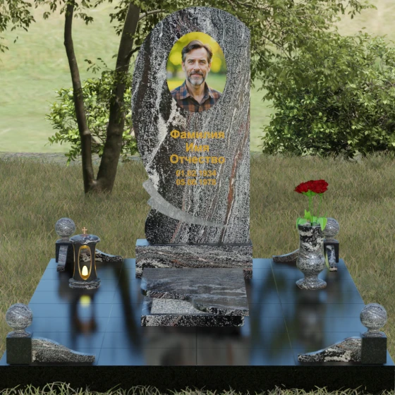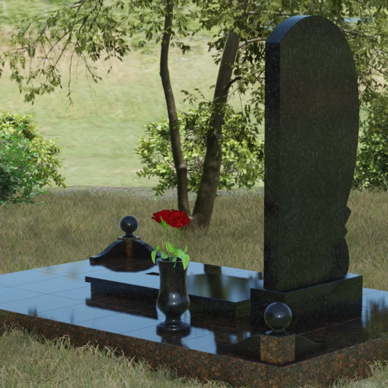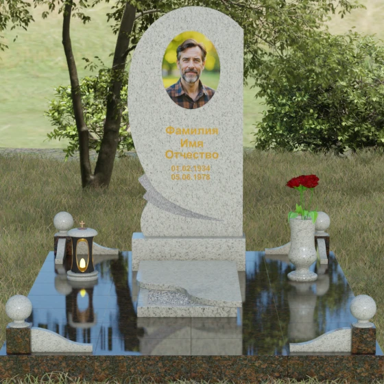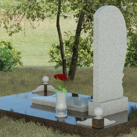 • Комплектация: Стела, тумба, цветник с закрытой плитой, цоколь с шарами, декоративные аксессуары (ваза, лампада).