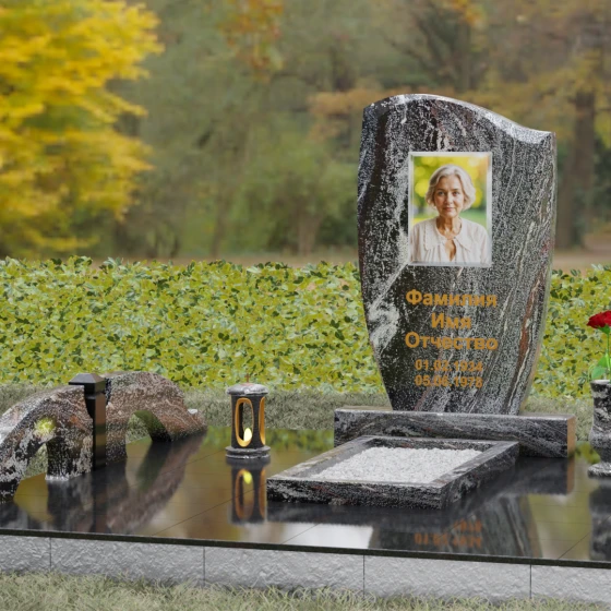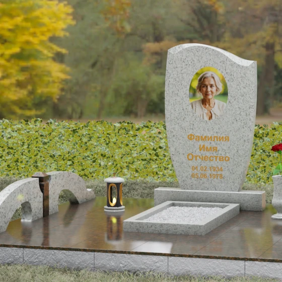 Кому подойдет: Данная модель является универсальным художественным решением, однако благодаря своим мягким, волнообразным линиям и элегантному силуэту, она особенно часто выбирается для оформления женских захоронений. Плавная геометрия подчеркивает нежность, любовь и душевную теплоту, которую сохранили в памяти близкие. В то же время, при выборе более строгих темных сортов камня (например, Габбро-диабаза), этот гранитный монумент приобретает лаконичность и статусность, становясь достойным символом памяти для мужчины, отца или дедушки. Это выбор тех, кто ценит гармонию формы и безупречное качество природного материала.