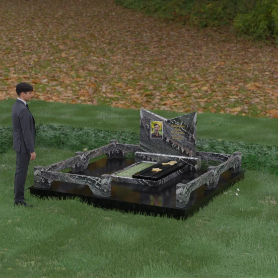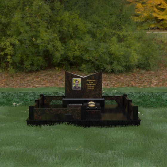 Кому подойдет: Данный мемориальный комплекс разработан для тех, кто хочет подчеркнуть особые заслуги и статус близкого человека. Строгая геометрия, наличие рельефных звезд на плите и форма «раскрытой книги» делают это надгробие идеальным выбором для оформления захоронения военного, ветерана, государственного служащего или человека, чей жизненный путь был примером стойкости и мудрости. Это выбор тех, кто ценит надежность, эстетическую завершенность и безукоризненное качество исполнения, которое останется неизменным для многих поколений.