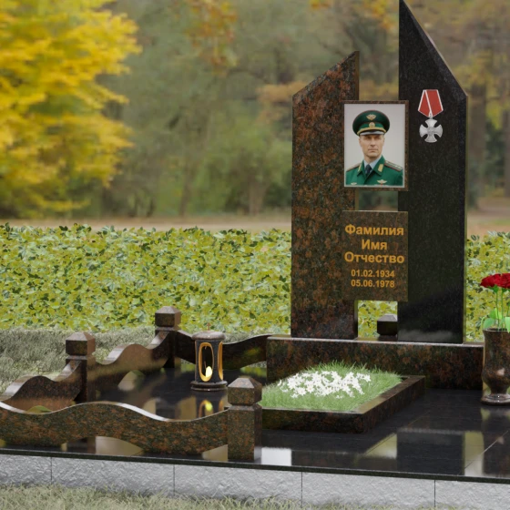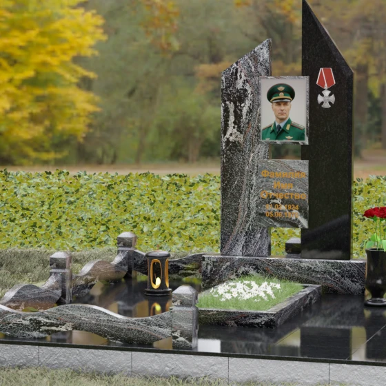Увековечивание памяти — это не просто дань традиции, а создание монументального символа, способного пронести сквозь десятилетия историю личности, её подвигов и характера. Данная мемориальная композиция разработана как архитектурное воплощение стойкости и мужества, где каждая линия и грань камня подчеркивают значимость жизненного пути. Массивность конструкции и безупречная геометрия создают атмосферу торжественного покоя, превращая место захоронения в величественный мемориал, вызывающий глубокое уважение у каждого, кто приходит почтить память ушедшего.