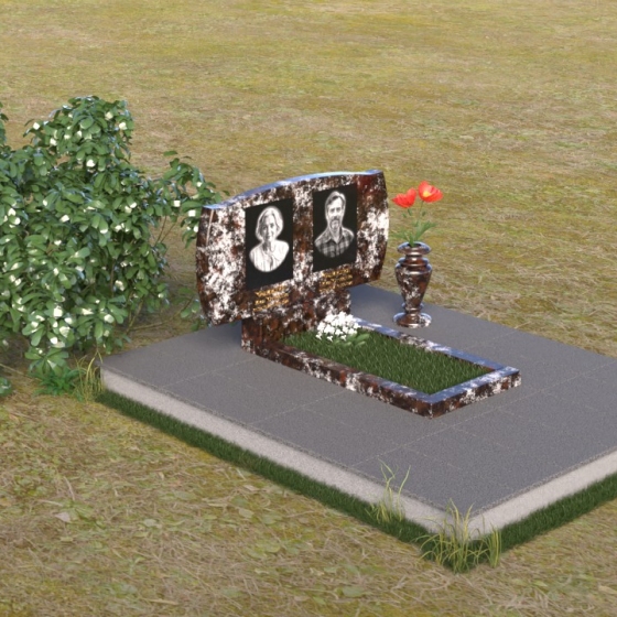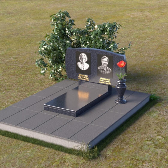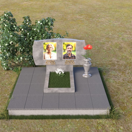 Величественная стела ПГ059 – это воплощение элегантности и сдержанной красоты. Её форма, напоминающая раскрытую книгу, с плавными, обтекаемыми линиями верха, создает ощущение покоя и умиротворения. Верхняя грань стелы имеет волнообразную форму с закругленными углами, что придает мягкость строгому камню. Боковые грани деликатно скруглены, переходя в полированную поверхность. Фаска по периметру стелы подчеркивает четкость линий и придает завершенность образу. В нижней части стелы предусмотрено место для установки дополнительной плиты, выполненной в едином стиле, что позволяет создать целостную композицию. Дополнительно, рядом с основной стелой, размещена небольшая ваза из того же материала, что и основной памятник, для живых или искусственных цветов.