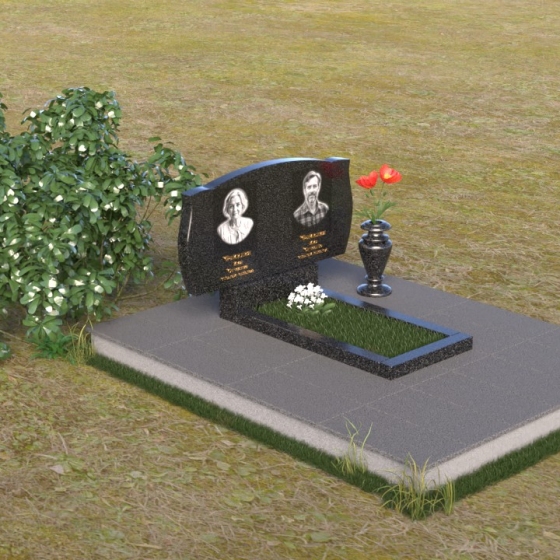 Мемориальная композиция ПГ060 представляет собой лаконичное, но выразительное надгробие, выполненное из благородного гранита. Стела имеет форму, сочетающую в себе строгость прямых линий и плавность изогнутых форм. Верхняя часть стелы оформлена двумя волнообразными выступами, создающими эффект легкости и устремленности ввысь. Боковые грани тщательно отполированы до зеркального блеска, отражая небо и окружающий пейзаж, что визуально расширяет пространство и добавляет монументу воздушности. Нижняя часть стелы переходит в прямоугольное основание, обеспечивающее устойчивость и надежность всей конструкции. Фаски на гранях смягчают углы, придавая изделию завершенный и гармоничный вид. Дополнительная горизонтальная плита, расположенная перед стелой, создает пространство для цветов или памятных вещей, а также служит символическим пьедесталом, подчеркивающим значимость усопшего.