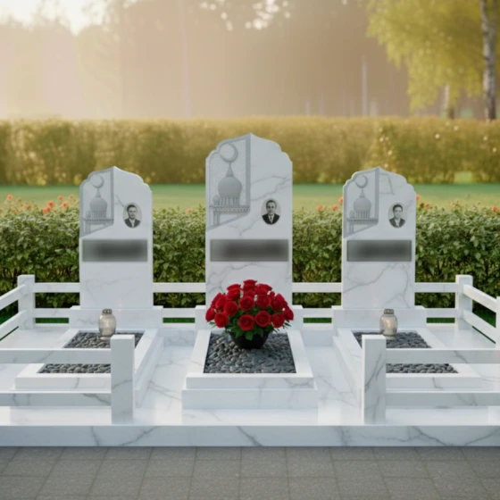 Кому подойдет: Данная трехсоставная мемориальная композиция станет идеальным выбором для оформления семейного захоронения на три персоны. Она ориентирована на людей, ценящих традиции мусульманской культуры, эстетику восточного зодчества и стремящихся создать на кладбище атмосферу защищенности, покоя и величия. Строгие формы в сочетании с изящной резьбой делают этот ансамбль универсальным решением для увековечивания памяти родителей, супругов или близких родственников, подчеркивая неразрывную связь поколений.
