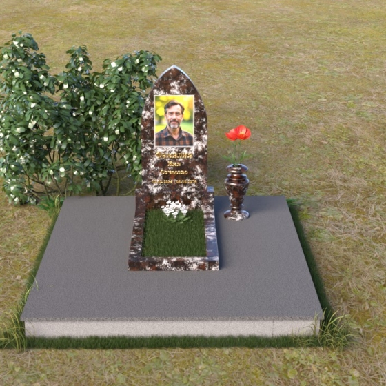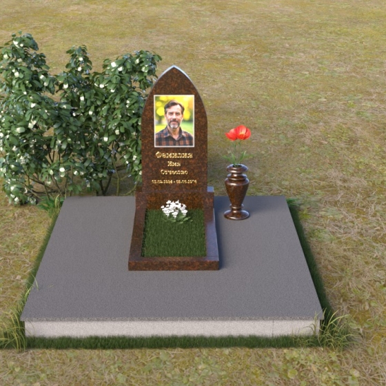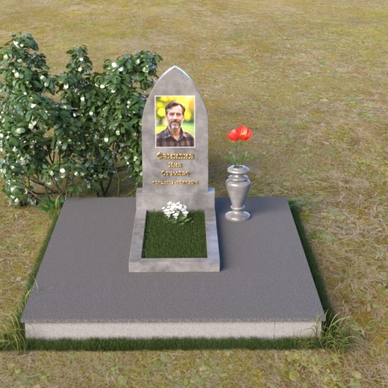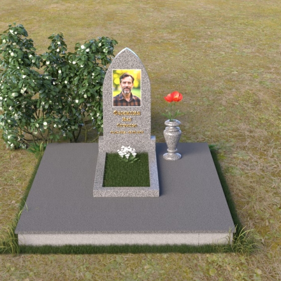 Величественная стела ПВ 032 представляет собой образец лаконичной элегантности и сдержанной красоты. Её строгая, но изящная форма притягивает взгляд, а тщательно продуманные детали создают атмосферу покоя и умиротворения. Верхняя часть стелы выполнена в форме плавной арки, устремленной ввысь, символизирующей духовное вознесение. Скругленные грани смягчают строгость линий, придавая монументу более мягкий и теплый облик. В верхней части стелы размещается портрет усопшего, выполненный с высокой степенью детализации, а ниже – гравировка с именем, датами жизни и трогательной эпитафией. Нижняя часть стелы переходит в прямоугольное основание, которое гармонично сочетается с общей композицией. Зеркальная полировка черного гранита создает эффект глубины и отражения, словно в вечности. Аккуратная подставка под памятник, выполненная из серого камня, дополняет композицию и придает ей законченный вид.