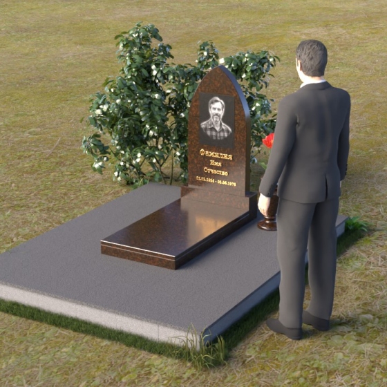 Плавные изгибы арки символизируют жизненный путь, полный взлетов и падений, радостей и печалей. Закругленные грани отражают мягкость характера и душевное тепло усопшего. Черный цвет полированного гранита символизирует скорбь и уважение, а его зеркальная поверхность – вечную память. Общая форма монумента создает ощущение покоя и защиты, словно оберегая сон ушедшего. Этот памятник – не просто каменное сооружение, а символ вечной любви и памяти, который будет передаваться из поколения в поколение.