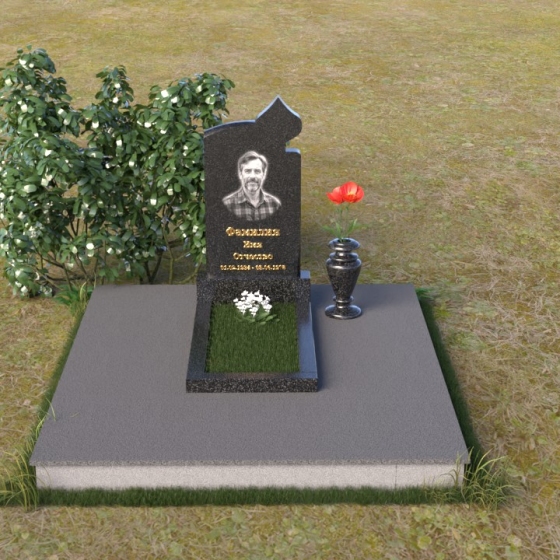 Форма стелы идеально подходит для размещения портрета усопшего. Благодаря своей вытянутой форме, она позволяет создать гармоничную композицию, где портрет будет занимать центральное место, а надписи с именем и датами жизни будут расположены в нижней части, словно основание, на котором зиждется память. Зеркальная полировка фона подчеркнет выразительность портрета, а гравировка, выполненная с высочайшей точностью, передаст все нюансы изображения. Кроме того, на стеле можно разместить дополнительные элементы, такие как символы веры, эпитафии или памятные знаки, которые отразят индивидуальность ушедшего человека. Ваза, выполненная в едином стиле с монументом, станет достойным дополнением композиции, позволяя украсить место упокоения живыми цветами.