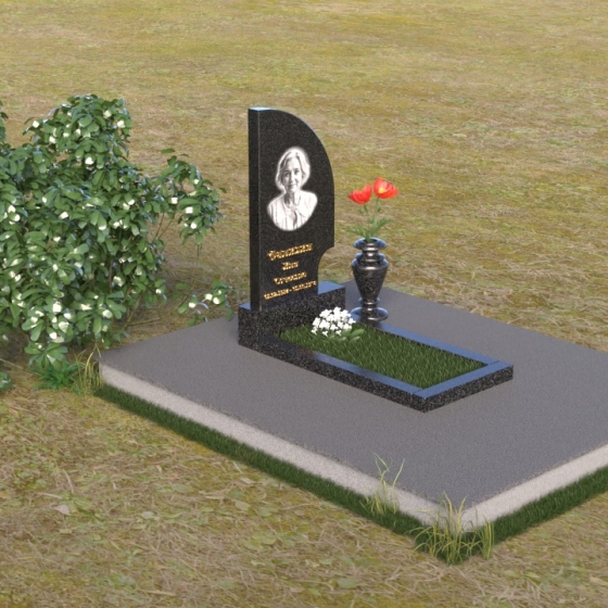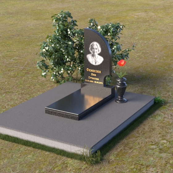 В основе этого мемориального комплекса лежит прочный и долговечный гранит. Этот материал известен своей исключительной стойкостью к атмосферным воздействиям, перепадам температур и механическим повреждениям. Гранит практически не впитывает влагу, что делает его морозостойким и предотвращает образование трещин в зимний период. Зеркальная полировка, достигнутая благодаря тщательному шлифованию, придает камню благородный блеск и подчеркивает его природную красоту. Плотность гранита гарантирует, что изображение и надписи, нанесенные на поверхность, сохранят свою четкость и яркость на долгие годы, не подвергаясь выцветанию или истиранию. Фундамент и горизонтальная плита, выполненные из того же гранита, обеспечивают устойчивость всей конструкции, символизируя незыблемость памяти и уважения. Массивность и основательность исполнения говорят о том, что этот памятник простоит века, оберегая покой ушедшего.