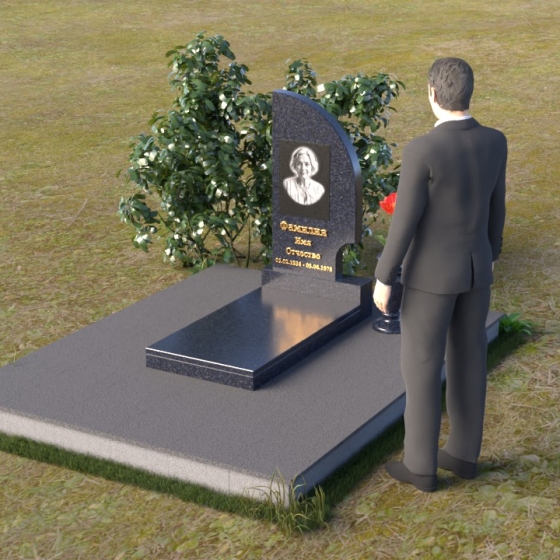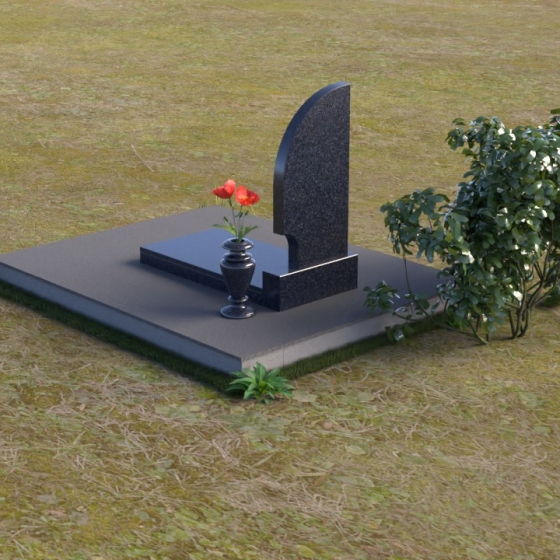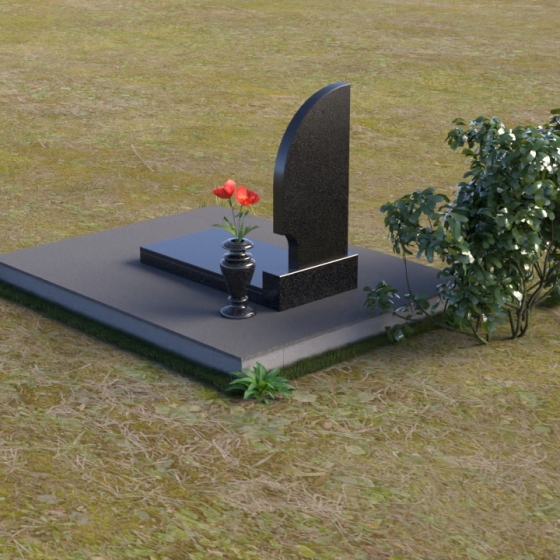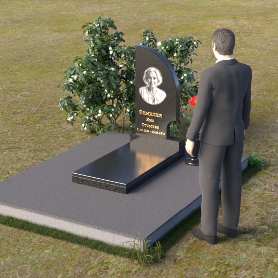 Величественная стела ПВ 047 – это воплощение сдержанной элегантности и глубокого уважения. Ее форма, напоминающая полумесяц или раскрытую книгу, словно приглашает к размышлениям и воспоминаниям. Верхняя часть стелы плавно закруглена, создавая ощущение мягкости и умиротворения. Зеркальная полировка черного гранита играет на солнце, отражая окружающий мир и создавая ощущение присутствия вечности. В нижней части стелы, под местом для портрета и памятной надписи, выполнен изящный вырез, добавляющий легкости монументальной конструкции. Этот элемент, словно арка, визуально облегчает восприятие камня, придавая ему изысканность и утонченность.