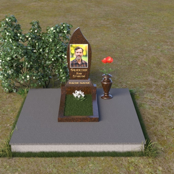 Основание стелы переходит в горизонтальную плиту, также выполненную из полированного гранита. Эта плита служит надежной опорой для стелы и предоставляет дополнительное пространство для возложения цветов и памятных вещей. Рядом с плитой можно установить небольшую вазу, выполненную в том же стиле, для живых цветов, которые добавят красок и жизни в это тихое место.