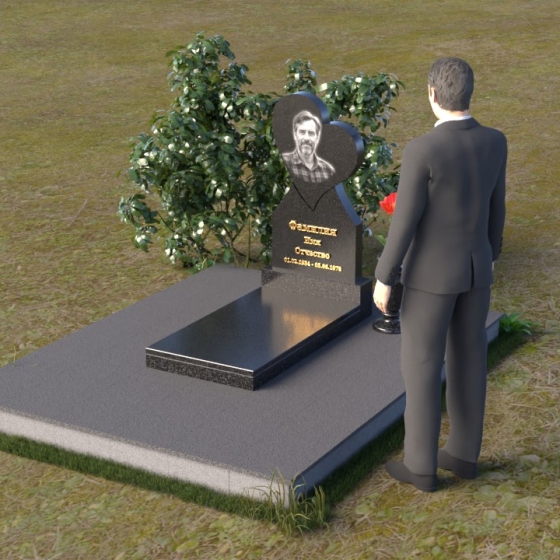 Форма сердца, выбранная для этого памятника, несет в себе глубокий символический смысл. Она олицетворяет безусловную любовь, которую близкие испытывали к ушедшему. Плавные изгибы сердца символизируют жизненный путь человека, его взлеты и падения, радости и печали. Вертикальная направленность силуэта говорит о стремлении души к небесам, к вечному покою. Зеркальная полировка камня отражает свет, символизируя надежду и веру в светлое будущее. Этот памятник словно оберегает память об ушедшем, даря чувство покоя и защищенности.