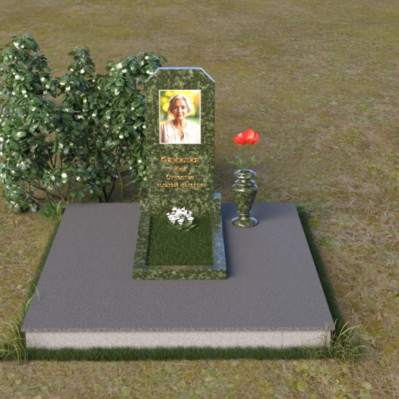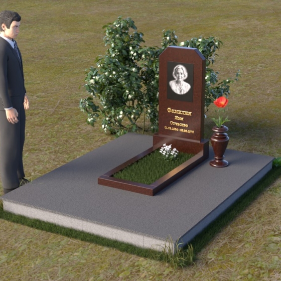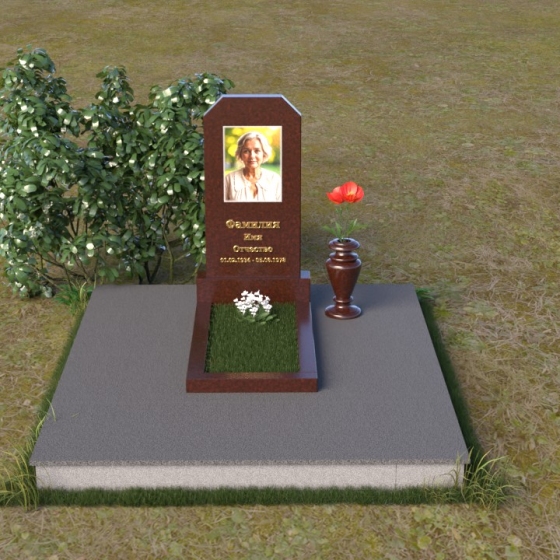 Оформление: Для этой формы надгробия рекомендуется использовать гравировку портрета в верхней части стелы, а ниже разместить ФИО и даты жизни. Четкий шрифт и лаконичный стиль надписи подчеркнут строгость и элегантность композиции. Портрет, выполненный с высокой детализацией, позволит сохранить образ ушедшего в памяти близких.